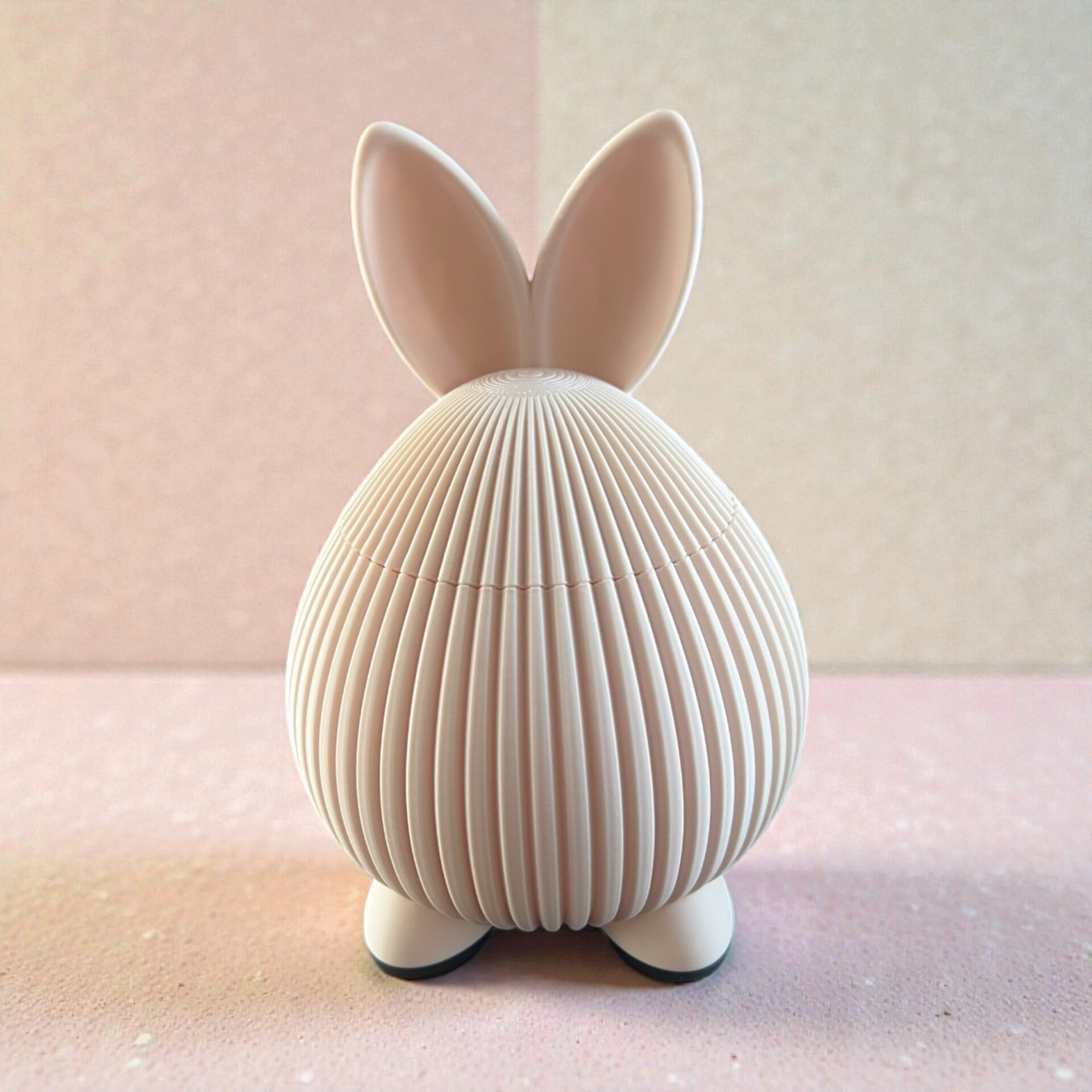Diese dekorative Aufbewahrungsdose im Hasendesign verbindet modernes 3D-Druck-Design mit verspielter Oster- und Frühlingsoptik. Die feine Rillenstruktur sorgt für eine hochwertige, besondere Haptik und macht die Dose zu einem echten Hingucker auf Tisch, Sideboard oder im Regal.