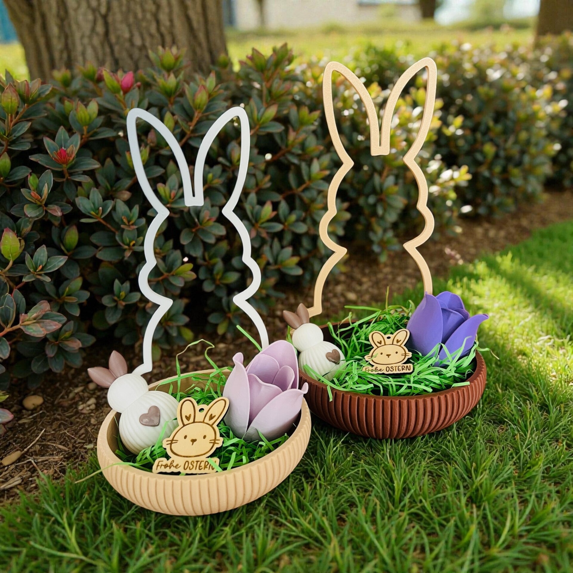Gefertigt aus hochwertigem Biokunststoff, vereinen sie modernes Design mit Umweltbewusstsein. Die schlichte Hasen-Silhouette macht jedes Nest zu einem besonderen Blickfang – ob als liebevoll befülltes Osternest für Kinder oder als dekoratives Highlight auf dem Ostertisch.